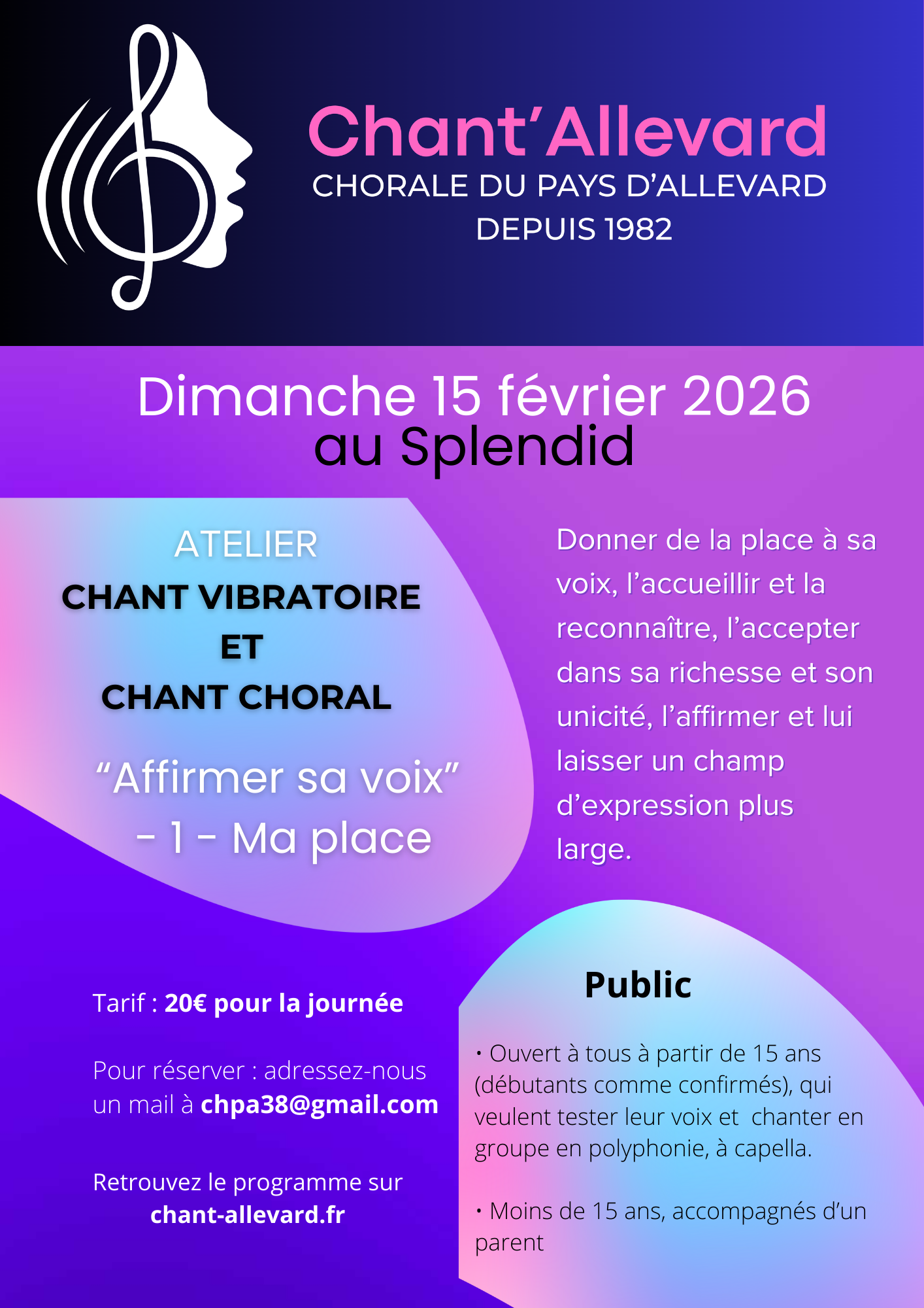 Pour cette première journée, venez participer à un atelier chant vibratoire et chant choral : "affirmer sa voix - ma place".